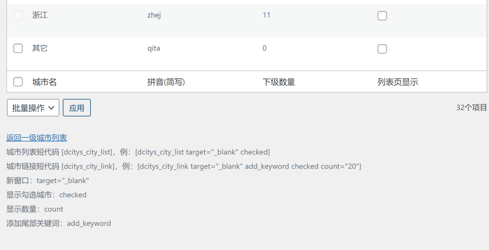 Dcitys怎么設(shè)置城市列表頁(yè)面admin2023年7月2日建站幫助 城市列表頁(yè)面顯示所有的城市鏈接,設(shè)置頁(yè)比較簡(jiǎn)單,首先在后臺(tái)添加一個(gè)頁(yè)面,輸入城市列表的簡(jiǎn)碼,簡(jiǎn)碼為 dcitys_city_list ,相關(guān)參數(shù)在城市列表下方,其中尾部關(guān)鍵詞為在站群設(shè)置中進(jìn)行填寫(xiě)。 生成的列表如下 標(biāo)簽# 使用幫助# 城市分站# 插件# 站群 上一頁(yè) 文章 城市分站插件基礎(chǔ)設(shè)置一 下一頁(yè) 文章 如何提高網(wǎng)站收錄量、提升網(wǎng)站搜索權(quán)重 相關(guān)文章 DcityS城市站群3.1.0更新功能 Dcitys城市分站插件3.0.6新功能 Dcitys城市分站插件3.0升級(jí)說(shuō)明 Dcitys 城市分站更新記錄 分站城市列表頁(yè)設(shè)置 簡(jiǎn)碼匯總-Dcitys城市分站設(shè)置 Dcitys城市分站?使用配置匯總 分站發(fā)布不同文章-Dcitys城市分站 小工具-Dcitys城市分站 分站頁(yè)面添加城市名-Dcitys城市分站 分站設(shè)置不同聯(lián)系方式-Dcitys城市分站 網(wǎng)站底部分站鏈接-Dcitys城市分站