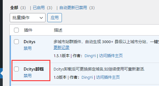 Dcitys 是按域名授權(quán),如授權(quán)后需要更換域名,需要在已安裝站群插件的網(wǎng)站內(nèi)安裝 站群卸載插件,進(jìn)行取消授權(quán),僅能通過(guò)此方式進(jìn)行更換域名,請(qǐng)您理解。