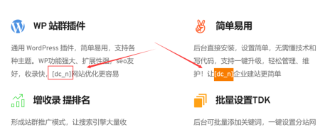 Dcitys城市分站插件內(nèi)置多個(gè)簡(jiǎn)碼(短代碼),可以根據(jù)需要進(jìn)行使用 1、城市名稱簡(jiǎn)碼 dcitys_city_name、dc_n、dc_name,添加在文章中,分站時(shí)可自動(dòng)顯示分站的城市名稱。 2、…