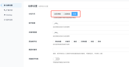 DcityS城市站群3.1.0 增加城市分站后綴模式及無前后綴模式。 前后綴模式下,支持自定義,比如 前綴模式填寫 city_ 時(shí)會(huì)生成 …