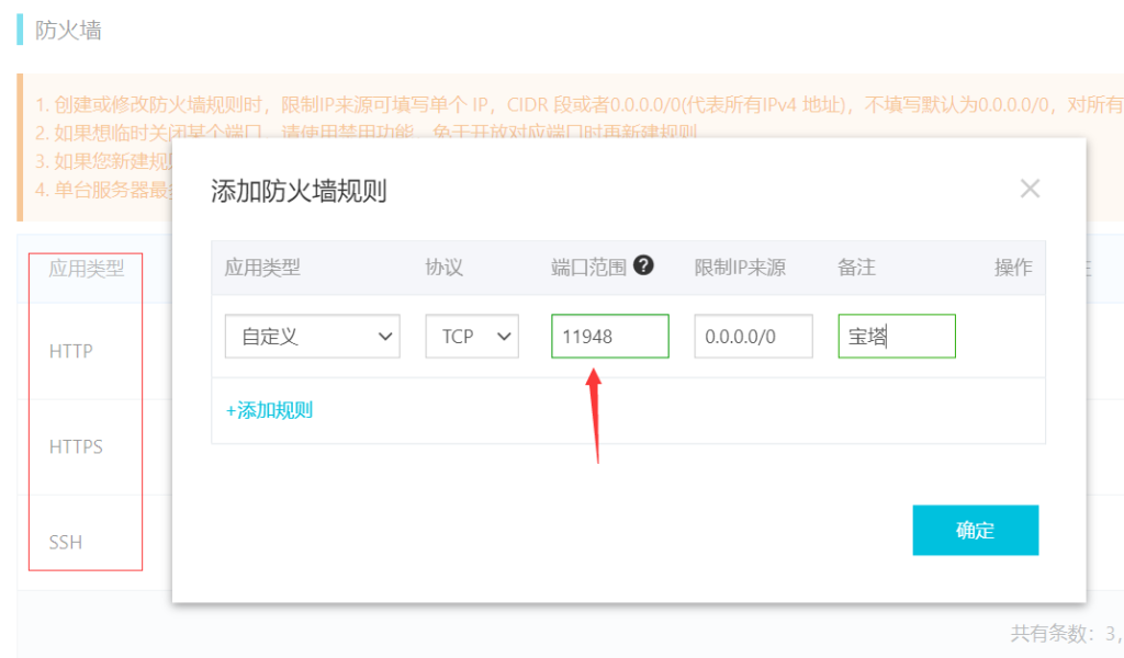 其中登錄地址中冒號(hào)后面為端口號(hào)11948,端口號(hào)為隨機(jī)產(chǎn)生,每次都不同,需要將此端口添加到輕量應(yīng)用服務(wù)器的防火墻中,防火墻默認(rèn)開啟的有 http的80端口,https的443端口,和ssh的22端口,如果沒有請(qǐng)?zhí)砑由稀?/p>