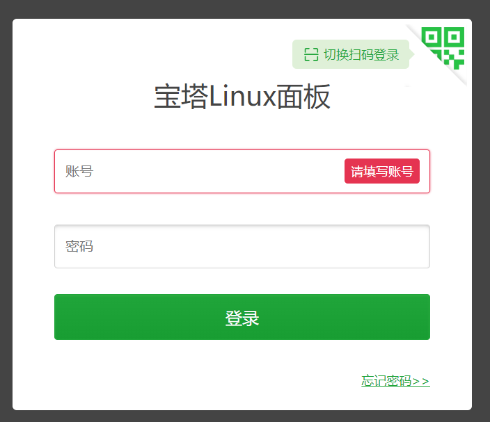 打開外網(wǎng)登錄地址,登錄寶塔面板,用戶名密碼在安裝寶塔面板后的提示信息中
