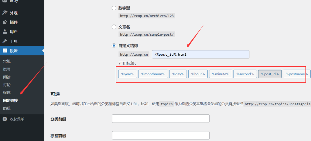 8、設(shè)置偽靜態(tài),在設(shè)置/固定鏈接中進(jìn)行設(shè)置,