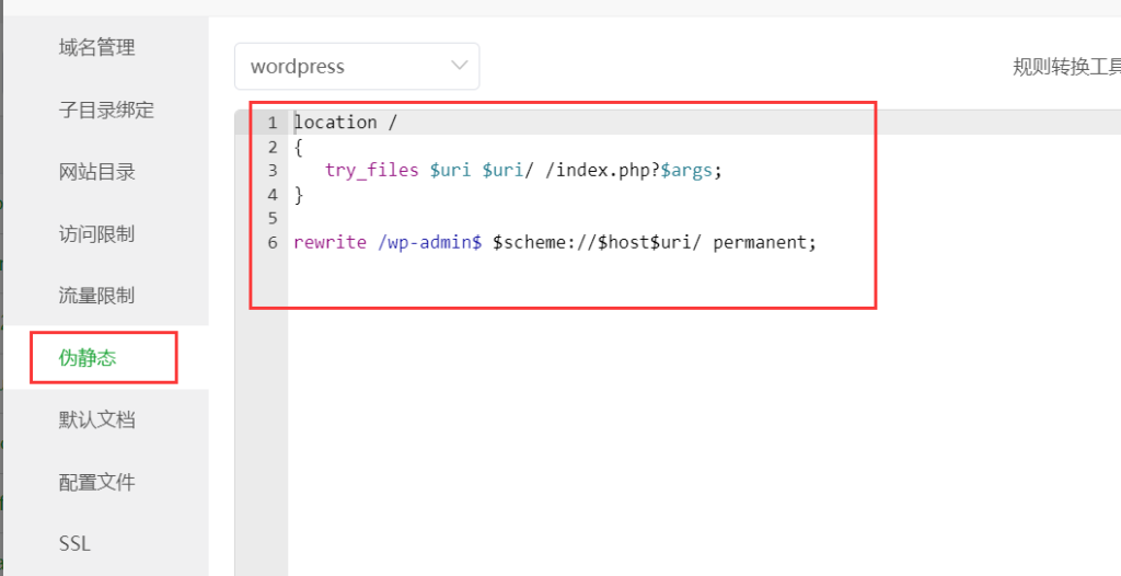 9、設(shè)置完成后還要設(shè)置 nginx 偽靜態(tài)規(guī)則,